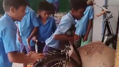 बिलासपुर – मस्तूरी विकासखंड अंतर्गत शासकीय प्राथमिक शाला सोन में बच्चों द्वारा मध्यान भोजन का चावल सायकल में ढोकर लाया…