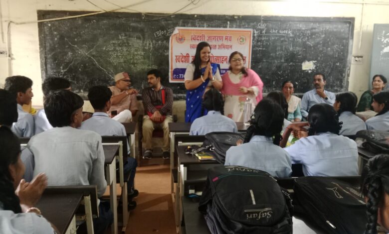 मंच की सम्भागीय पदाधिकारी अरुणा दीक्षित और चांनी एरी ने छात्र छात्राओं को स्वदेशी उत्पाद उपयोग करने शपथ दिलाई इस अवसर पर प्रणव शर्मा समदरिया सुशांत द्विवेदी योगेन्द्र बंजारे विवेक पाण्डे सहित विद्यालय के प्राचार्य और व्याख्याता गण उपस्थित थे