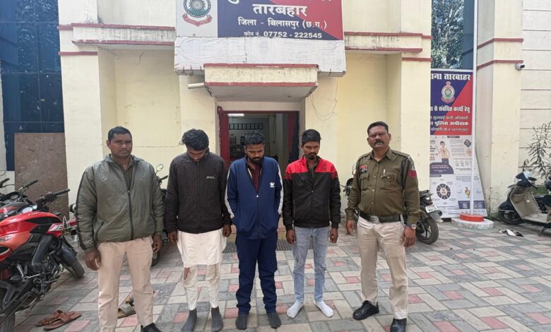 बिलासपुर – थाना तारबाहर क्षेत्र अंतर्गत राजीव प्लाजा गेट नंबर 01 के पास हुई मारपीट की घटना में तारबाहर पुलिस ने त्वरित कार्रवाई करते हुए तीन आरोपियों को गिरफ्तार कर प्रतिबंधात्मक धाराओं के तहत कार्रवाई की है। घटना की गंभीरता को देखते हुए पुलिस ने तत्काल संज्ञान लेते हुए आरोपियों को पकड़ने में सफलता हासिल की। गौरतलब है कि प्रार्थी अमर पाल राजीव प्लाजा में गार्ड की नौकरी करता है। दिनांक 10 जनवरी 2026 की रात्रि करीब 10 बजे वह खाना खाने गया हुआ था, इस दौरान उसकी जगह साहेब सिंह ड्यूटी पर तैनात था। रात लगभग 10.20 बजे एक ऑटो चालक अपनी ऑटो को राजीव प्लाजा के गेट नंबर 01 से अंदर ले जाने का प्रयास कर रहा था। साहेब सिंह द्वारा ऑटो अंदर ले जाने से मना करने पर उक्त ऑटो चालक ने अपने अन्य साथियों को बुला लिया और गार्ड अमरपाल के साथ हाथ-मुक्कों और डंडे से मारपीट शुरू कर दी। साथ ही आरोपियों द्वारा अश्लील गाली-गलौच करते हुए जान से मारने की धमकी भी दी गई। घटना की सूचना मिलते ही थाना तारबाहर में अपराध पंजीबद्ध कर विवेचना प्रारंभ की गई। मामले से वरिष्ठ पुलिस अधीक्षक बिलासपुर रजनेश सिंह को अवगत कराया गया, जिनके निर्देश पर अतिरिक्त पुलिस अधीक्षक शहर पंकज कुमार पटेल एवं नगर पुलिस अधीक्षक सिविल लाइन निमितेश सिंह के मार्गदर्शन में थाना प्रभारी निरीक्षक रविन्द्र कुमार अनंत के नेतृत्व में टीम गठित की गई। पुलिस टीम ने घटनास्थल के आसपास लगे सीसीटीवी फुटेज के आधार पर आरोपियों की पहचान कर उन्हें गिरफ्तार किया। गिरफ्तार आरोपियों में मोहम्मद शाहरूख पिता मोहम्मद युसुफ खान उम्र 32 साल तारबाहर, रियाज अहमद पिता अब्दुल रशीद उम्र 27 साल राजकिशोर और सागर नायक पिता पंचराम नायक उम्र 26 साल ग्राम जांजी थाना सीपत शामिल हैं। पुलिस जांच में यह भी सामने आया कि आरोपी रियाज और सागर के विरुद्ध थाना सरकंडा में पूर्व आपराधिक रिकॉर्ड दर्ज है। सभी आरोपियों को माननीय सिटी मजिस्ट्रेट के न्यायालय में पेश किया गया। इस कार्रवाई में सउनि उदयभान सिंह सहित पुलिस स्टाफ की सराहनीय भूमिका रही।