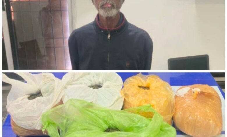 बिलासपुर – जिले के कोटा थाना अंतर्गत चौकी बेलगहना पुलिस ने अवैध मादक पदार्थ गांजा के खिलाफ बड़ी कार्रवाई करते हुए 5 किलोग्राम गांजा बरामद किया है। इस मामले में पुलिस ने एक आरोपी को गिरफ्तार किया है। पुलिस से मिली जानकारी के अनुसार बेलगहना चौकी को मुखबिर से सूचना मिली थी कि फारेस्ट कॉलोनी बेलगहना निवासी दादा मिंया नामक व्यक्ति अपने घर में अवैध रूप से गांजा रखकर बिक्री कर रहा है। सूचना की पुष्टि के बाद वरिष्ठ अधिकारियों अतिरिक्त पुलिस अधीक्षक ग्रामीण मधुलिका सिंह और अनुविभागीय पुलिस अधिकारी नुपुर उपाध्याय के मार्गदर्शन में पुलिस टीम गठित की गई। दिनांक 15 जनवरी 2026 को पुलिस टीम ने नारकोटिक्स एक्ट के प्रावधानों के तहत विधिवत छापेमारी की। कार्रवाई के दौरान आरोपी दादा मिंया पिता मौली बक्स उम्र 65 वर्ष के कब्जे से दो कपड़े के थैलों में रखे 5 पैकेट गांजा बरामद किया गया। जब्त गांजा का कुल वजन 5 किलोग्राम और अनुमानित कीमत 2 लाख 50 हजार रुपये आंकी गई है। साथ ही गांजा बिक्री की रकम 1300 रुपये भी बरामद की गई। कुल जब्ती मशरूका 2 लाख 51 हजार 300 रुपये की बताई गई है।