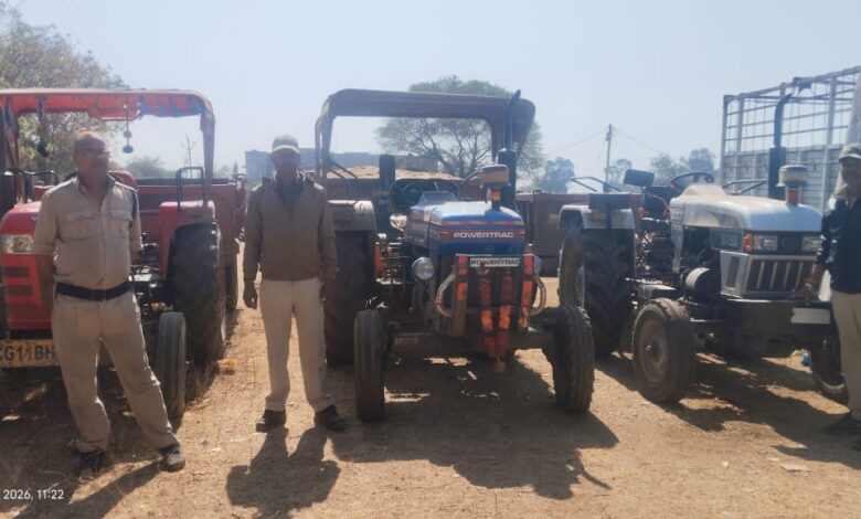 शिवनाथ नदी से अवैध रेत उत्खनन और परिवहन पर बड़ी कार्रवाई….भिलौनी घाट से 5 ट्रैक्टर जब्त,