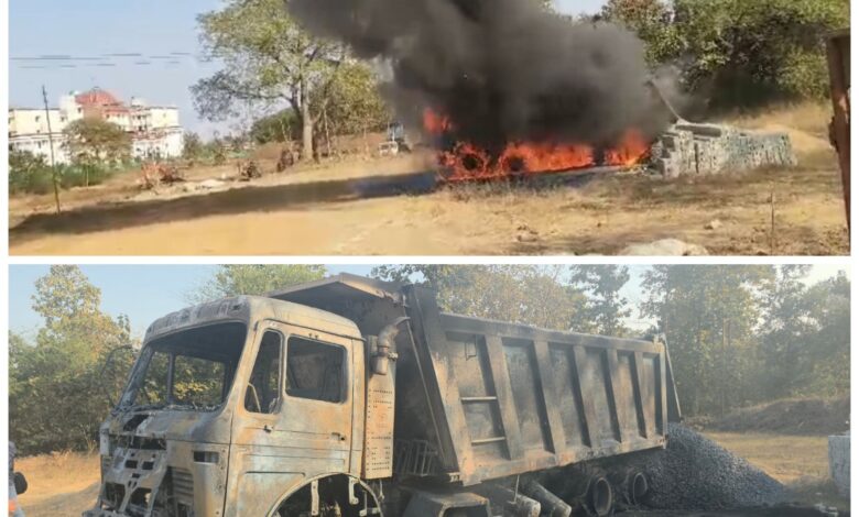 बिलासपुर: हाईटेंशन तार की चपेट में आने से हाईवा में लगी भीषण आग…यूनिवर्सिटी परिसर में बड़ा हादसा,